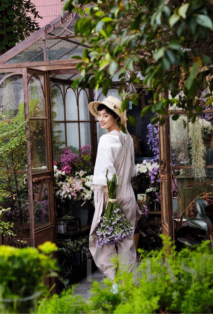此外,阚清子对复古田园风格的演绎也独具匠心。她曾以一袭蓝色波点连衣裙搭配黑色西装,将田园的清新诗意与都市的干练飒爽完美结合,被网友赞为“教科书级的混搭”。在另一组复古写真中,她身着蓝裙置身于绿意之中,忧郁的眼神与静谧的姿态,仿佛穿越时光而来的古典少女,充满了故事感。这表明她的时尚感染力不仅源于对潮流的敏锐,更在于她能将自己的情感与理解注入造型,从而引发观者的共鸣。